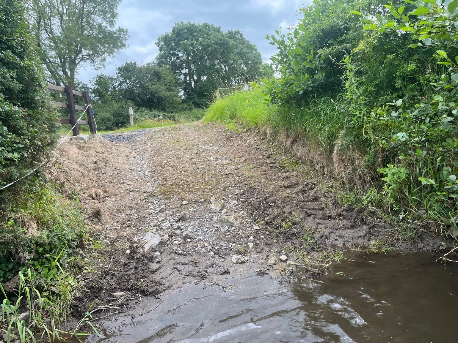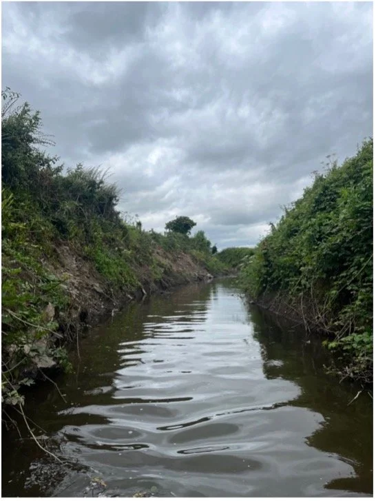 Bank habitat assessments included recording vegetation type, condition, and continuity, using the Fossitt (2000) habitat classification where applicable. Channel characteristics such as flow type, substrate composition, and modifications or obstructions were documented, alongside key ecological receptors (KERS), including evidence of protected species (e.g., otter, kingfisher), invasive species, and other notable flora or fauna.